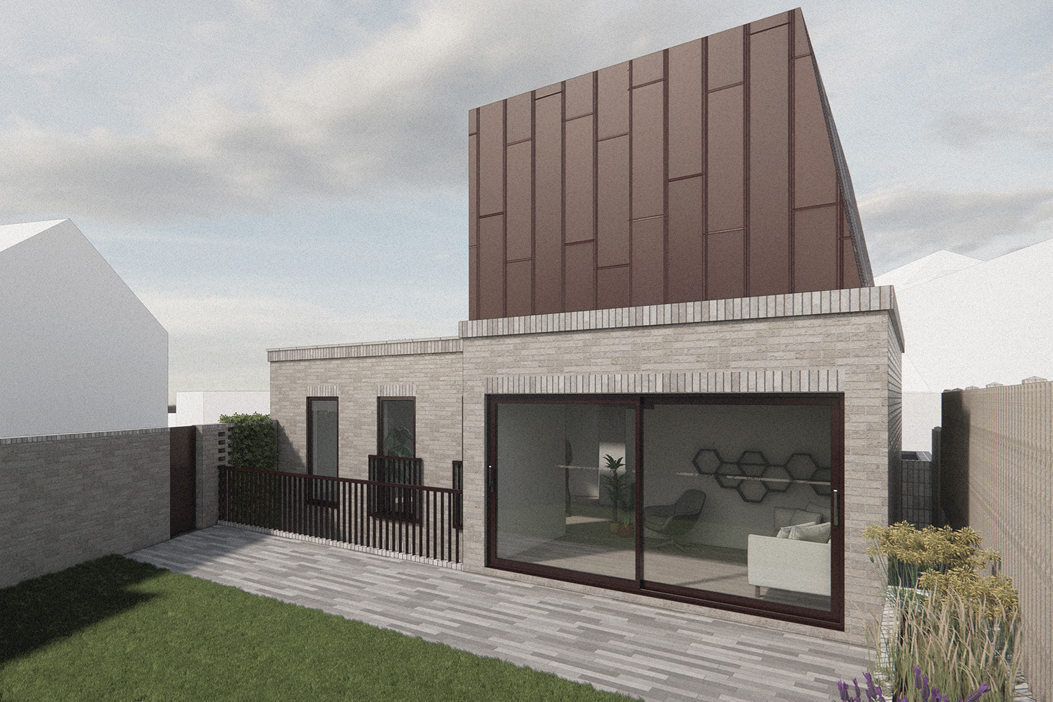 The proposal introduced a new dwelling within a rear-garden plot served by a shared access track, alongside existing garages and outbuildings. The scheme needed independent parking, refuse and cycle storage, compliant internal floor area for a 3-bed, 5-person home, and a usable private amenity space.