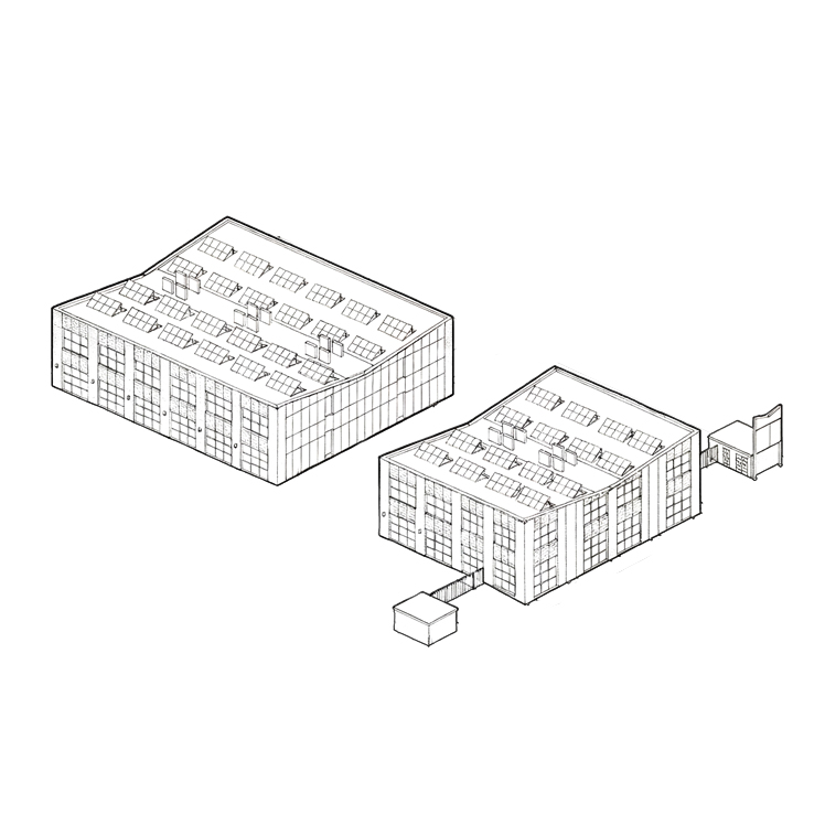 The site was a vacant brownfield plot within an industrial estate, cleared in 2005 and bounded by a railway embankment, an on-site sewer easement and adjacent commercial uses. The brief required flexible, serviceable enterprise units, while creating a workable access and parking arrangement from the existing cul-de-sac approach.